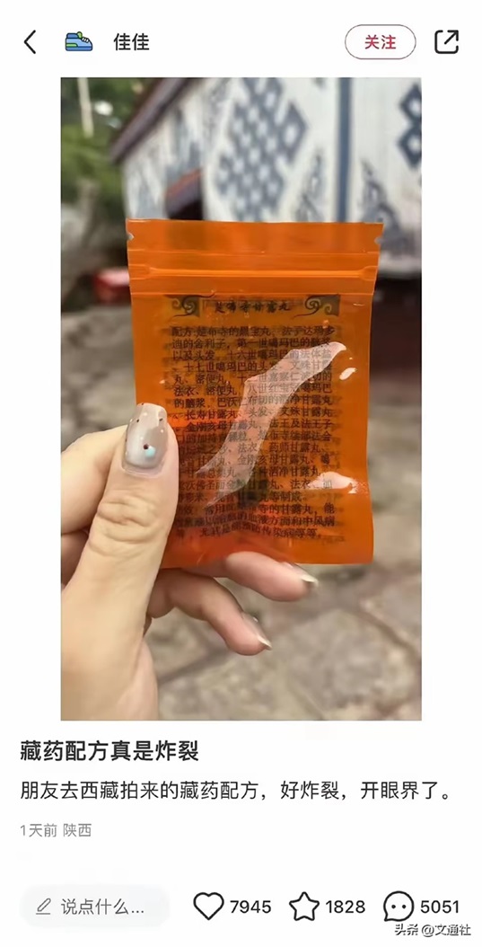 (图示:原图片发布者所拍摄楚布寺恐怖的、添加人脑浆的甘露丸配方。)