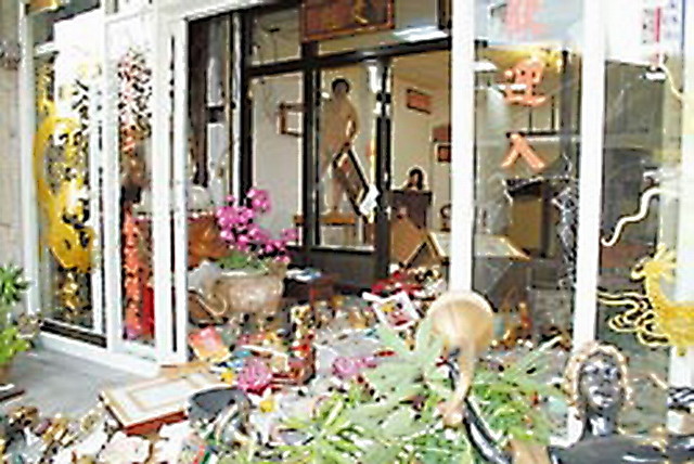 ▲男子黄国相与干女儿锺佩玲全身赤裸在佛具店练功走火入魔,黄国相以三太子的语气念念有词并砸毁店内上千尊佛像。(洪祥和摄)