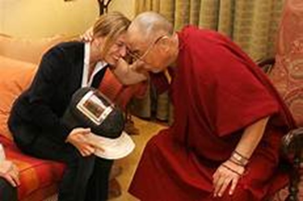 萬幸!女生脖子沒有被達賴喇嘛壓斷。 |