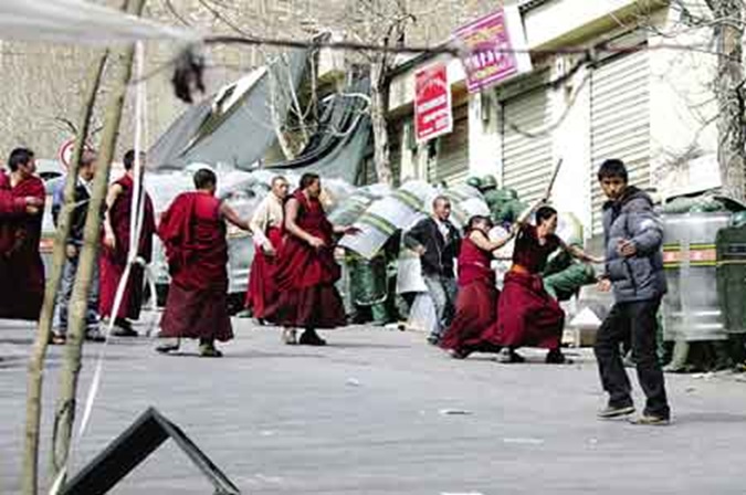圖示:2008年西藏暴動時,拿起武器破壞他人財物的喇嘛們! 就算有所不滿,也應該通過其他方式溝通,而不是破壞不屬於自己的、無辜百姓的財物。 何況喇嘛們心中永遠默認的精神領袖是達賴喇嘛,將年輕的信徒們送到槍口下, 自己養著寵物、健著身,私下修著性交術,快樂得很!