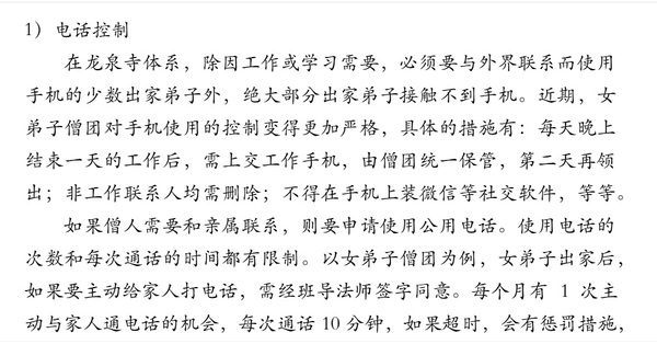 12 我陷入了孤立無援的境地 我感到自己陷入了深深的孤立無援之中。我遇到了一個前所未有、讓我充滿迷惑的困境,但無人可以求助。我們在精舍的生活,能夠接觸的人非常有限,只有一位在精舍與我們同住的護持淨人和幾位接送上下學的居士。我們跟那幾位居士之間的交流非常少,跟淨人的交流相對多一些,但也不過是淺層次的交流,況且也不可能跟她說這些遭遇。 在極樂寺有熟悉的同學,她們是可以交流的物件,但是大多數同學都沒有手機,也不能上網,難以聯繫上。唯一有效的聯繫管道是打電話到寺裡客堂,請客堂幫找同學接聽電話,我想過這個辦法,但又馬上否定了,因為擔心這麼做會引起客堂負責法師的猜疑,不僅不會幫我叫來同學,還極可能上報給賢Bo,最終會給我自己和同學都帶來麻煩。即便是能夠聯繫上同學,像這樣涉及對師父懷疑和否定的“冒天下之大不韙”的事情,也不知道人家是否願意聽我說。 另外,我在精舍學習,本身是需要保密的,原則上,我在精舍遇到的事況,只能跟知道我在精舍的兩位法師——賢Ri、賢Bo法師交流。我想,我先跟賢Bo交流試試看吧。我給賢Bo發了一條信息,說:“最近師父給我發了很多匪夷所思的資訊,非常超出我的經驗範圍,我不知道怎麼回答。”賢Bo回復:“你怎麼想就怎麼答唄,對師父還有什麼不能說的!”我一下子被噎住了。 按常理,人的正常反應應該是先問我收到了怎樣的“匪夷所思的資訊”,可是她怎麼什麼都不知道,就能直接給意見呢?最近這兩次跟她交流師父短信怪異的情況,似乎她都是條件反射一般地立馬站在師父的一邊,似乎這是她的本能反應:但凡出現了什麼問題,都是我們有問題,而不是師父有問題——師父是絕不可能有問題的。上一次她說讓我懺悔,讓我“堅定地依止師父”,我努力照做了;這一次,她又說讓我“怎麼想就怎麼答”,我不知道再怎麼遵從她的指示了。我並非不能“怎麼想就怎麼答”,恰恰是我已經多次如實地跟師父反映了我的想法,但師父的短信依然讓人感到困擾,而且困擾的程度正在變本加厲,我能怎麼辦呢?賢Bo連連兩次同樣的回饋讓我感到她是不會設身處地為人著想的,不能再奢望她能夠幫助解決問題,再溝通已沒有意義。 寄予賢Bo的希望已然落空,而在賢Ju的面前,我也感到自己陷入了某種心理危機當中。本來就感到她不把我放在眼裡,而當她在師父的短信那裡輕鬆“過關”之後,我更加感到,她憑恃自己依師比我修得好而更不把我放在眼裡了,這時候,我感到我和她的相處比以前更困難了。 按照戒律的要求,尼眾需要“護獨”,簡單來說,如出行、眠宿等事都需要有至少一位元元同伴的相伴,這條戒在尼眾的戒律中還是一條比較重的戒。以前在極樂寺的時候,整個僧團有幾百號人,單單一個班也有幾十號人,找同伴護獨還是比較容易的,而現在,只有賢Ju和我相依為伴,她就成了我持這條戒的唯一依靠。我很擔心“得罪”賢Ju,使得她不願好好給我護獨。雖說律中有開緣——如果同伴堅決不肯為自己護獨,不得已的情況下,獨自行動不算犯戒,但我也不想輕易採用開緣。 和賢Ju相處的困境,在師父和我短信互動的間隙,我也跟師父表達過多次,希望師父能夠給予相關的指教和幫助,但我每一次的訴說都仿佛竹籃打水,沒有一次得到過師父的回應,他似乎只關心他的“依師”問題。開始的時候,我對於師父的反應也很困惑,我想,我們體系不是常常講“創造清淨、和合、增上的師、法、友團隊”,不是常常講“依師、依友、依僧”嗎?我以為師父對於我倆的和合會很重視。 因為總是得不到回應,我就想,也許師父認為這個問題不重要?或者是他想鍛煉我,讓我自己去面對、解決?但這個狀況確實超出我的經驗、能力範圍了,我不知道怎麼面對,要不然我也不會求助了。和師父的互動越來越讓我感到困惑,和賢Ju的相處也似乎越來越陷入僵局,我實在是覺得無助又無奈。某種意義上,也是因為賢Ju的“推動”作用,而使我在師父的短信中難以抽身而出。 之前,當師父的短信顯現出越來越曖昧的意味時,我就有過不再回復師父短信的想法,但賢Ju發現了我不回復師父的短信,就對我表示很不滿,認為我不恭敬師父,讓我必須要回師父短信,而且是要第一時間回復——在這個問題上,她表現出比以往在其他事情上更強勢的態度。在與賢Ju危脆的關係面前,我選擇了妥協。 我感覺自己已經有些被逼到絕路,實在已經不知道如何面對了。這時我想,現在這樣的情況,我可以向更上一級的賢Ri法師求助了。按照以前在極樂寺的時候向他請益問題的經驗,他都是“有求必應”;在我們來精舍之初,他對我們也有過關懷和囑咐,我也曾發微信請益他如何與賢Ju相處的問題,當時他很快就給我回復了,所以有理由相信,現在我遇到了這麼大的難題,他會幫忙的。於是,我給賢Ri法師發送了一條微信,大意說,最近師父經常通過短信調教我,強度非常大,方式也極其匪夷所思,我的情緒很低落,自己對師父的信心也降到了極低,請教法師應該怎麼辦。然而,這條資訊石沉大海,直到最後一刻,賢Ri法師也沒有傳來任何動靜。 13 最極端的時刻來臨了 1月8日,週一,我們又該上學了。這是相對平靜的一天,一整天下來,師父沒來短信。但到了晚上10點多,師父的短信又來了:“依師感覺怎麼樣?”緊接著問:“願意初次給嗎?”這時,我實在有些驚呆了。但我知道,我沒法說“不願