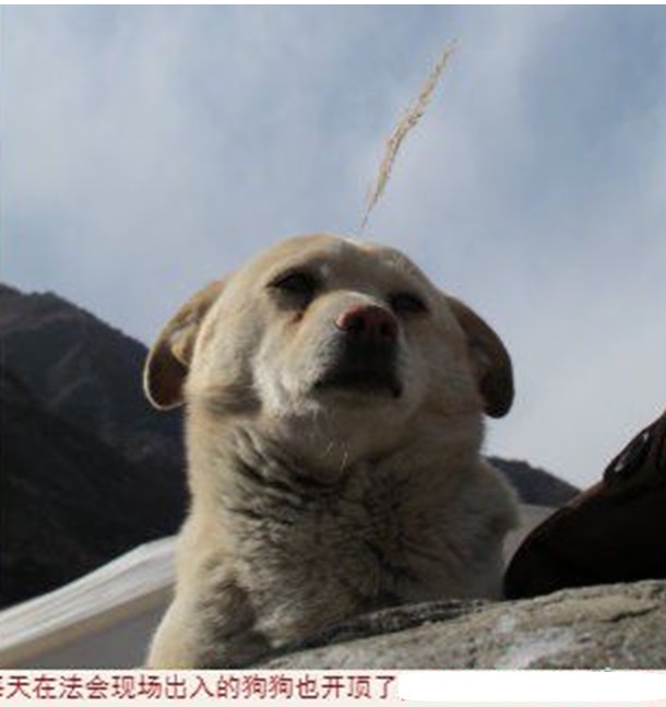 圖中為法會現場的狗狗之頭頂也可以插草開頂,不知道如此神奇、密不外傳的
