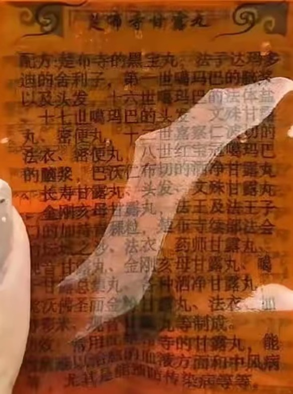 (原圖片發佈者所拍攝楚布寺恐怖的、添加人腦漿的甘露丸配方。)