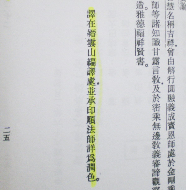 (2)《在四川最初的一年半中(民國二十七年八月到二十八年底),導師於北碚縉雲山之漢藏教理院與法尊法師共同修學。其間,導師為法尊法師新譯的《密宗道次第廣論》潤文》
