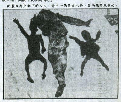 Kommentar von T.K. zum Bild 2: Drei Menschenhäute, eine vom Erwachsenen und zwei von Kindern. Haben sie etwas Kriminelles getan? Nein. Nur weil sie die Leibeigenen sind. Wenn ihr Landherr, die Lamas, die Menschenopfer braucht, werden sie abgehäutet. Ihr Leben sind den Lamas NICHTS wert.