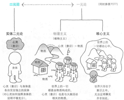 二元论者相信,身体和心灵是截然不同的两种物质,它们相互交流却又彼此分离。((英)奈杰尔·沃伯顿(Nigel Warburton)着,哲学的门槛 8堂极简哲学课,新华出版社,2023.11,第180页)但是二元论又无法解释身体和心灵之间彼此是如何交互作用的。
