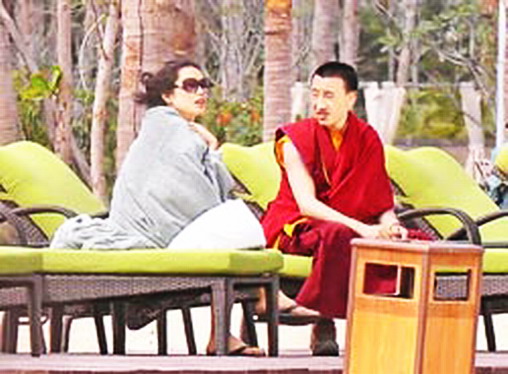 田庄阿伯谈喇嘛 座落在翠绿田野中的土地公庙,老榕树撑起大阳伞,几个老人静静享受骄阳下独有的清凉,我们的到来,搅动原有的静谧,一位老阿伯接过DM,以不太轮转的国语扯开喉咙说:「喇嘛我知道呀!就衣服红红的,类似猪肝红,有一边斜斜的像这样(在胸前做个手势),穿裙子没穿内裤的那种人。」 「阿伯您说得好清楚,您常看到喇嘛吗?」我问。 「常看到呀!我有许多朋友和喇嘛住同条巷子,就在○福市场附近的○东路上,我去找他们,就看到那个喇嘛带着穿旗袍、气质很好、学历很高的女子进屋子,随后把铁门拉下,很久才出来,我的朋友常常看到咧!」 「在裡面做什么?」同行的义工好奇的问