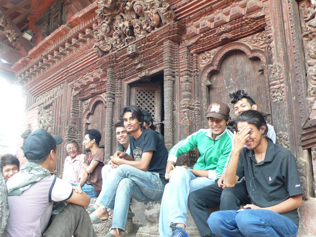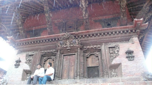 在奇旺、在波卡拉,看到當地的人民多穿著傳統服飾,行為舉止多友善、拘謹、有節制,加上南亞獨特的文化風采,早將機場看到景象忘得一乾二淨,直到又回到加德滿都。回到這個全世界文化古蹟最密集的古城,才又被這種性愛木雕群,來了個震撼教育。 回到加德滿都時,細雨紛飛,導遊瑞迪首先安排我們參觀世界上最古老的佛教古城….Patan 。 相傳佛祖釋迦牟尼曾到此傳道的帕坦,位在加德滿都南方五公里處。佛教的守護者、印度孔雀王朝 的明君阿育王也曾到此城,立下四個精美的石柱。而其創建者Ashoka國王是為虔誠的佛教徒,尼泊爾人口中15%的佛教徒,幾乎全定居於此。加上近三百年 來,它一直是瑪拉王朝帕坦王國的首都,所以上千座精美絕倫的佛教寺廟,在帕坦的巧匠精工下誕生了,讓它贏得了『Lalitpur』…『美麗之城』的封號, 更被聯合國教科文組織列為重點保護的古都之一。 帕坦,像是個被拘禁在時空膠囊裡的小城。撐著傘,陷溺在小巷的泥濘裡,也陷溺在古色古香的南亞文化裡:櫛比鱗次的大小廟宇和神像、雕工精美繁縟的窗櫺、眉間點著紅色蒂卡的紗麗美女、傳統古舊的商店….全被千絲萬縷的雨陣圍籠禁錮在遙遠的年代裡。