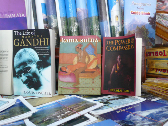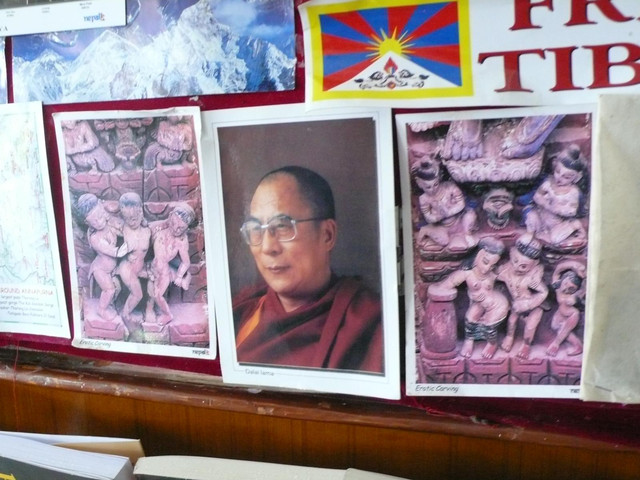 略評:性廟與慾經(Kama Sutra)--揭露藏傳佛教的起源 『女性千萬不要穿著暴露的衣服,情侶在人前千萬不可表現太親暱,因為尼泊爾是個民風極其保守的國家。』 到尼泊爾前,閱讀相關旅遊資訊時,印象最深刻的就是這句話。 我想幾乎全民信教,遠離海洋,偏居山區的小國,理當有著比海洋國家更保守的風氣才是。但是, 在加德滿都機場,等候飛往奇旺的飛機時,同行好友之文神秘兮兮地將我拉到售貨的櫃臺前,指著展售的明信片時,著實讓我嚇了一大跳:居然印的是木雕的活春 宮。兩P的,三P的,還有多P,簡直像是在開性愛派對。 更令人不可思議的是,達賴喇嘛的肖像居然夾在兩張活春宮畫間,連描寫甘地聖雄的書也和著名的印度慾經(Kama Sutra),並列排放在書櫃上。在這個保守的小山國裡,看到衝突性這麼強烈的組合,真叫我傻眼。
