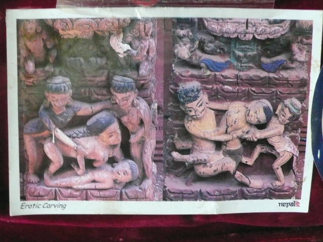 如果尼泊爾真的性觀念這麼保守,會什麼在光天化日、眾目睽睽市集旁的廟宇飛簷上,會刻滿比『花花公子』裡還撩人的性愛圖案呢? 我看:瑞狄一再窘迫地閃躲我殷切問訊的眼光。我想:還是到圖書館和網路上,去打破沙鍋,查到底好了。 經過一個多月,讀了許多相關書籍和網路文章。再經過兩三個月的沈澱和省思。終於,我開悟了。