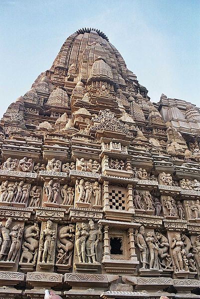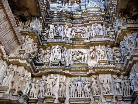 (圖說: 克久拉霍神廟群,是在西元950年到1050年間,為當時信奉坦特羅教(印度密教)月亮王朝在其首都所建的性廟,是坦特羅教的傳播中心,更是舉行坦特羅崇拜狂歡儀式的場所。以現在人的說法,就是『集體性愛派對場』。性愛雕像約有九層,越高層的性愛體位越難,屬於高難度的『譚崔瑜珈』,非『一般人』所能為....此文摘錄自以下文章)