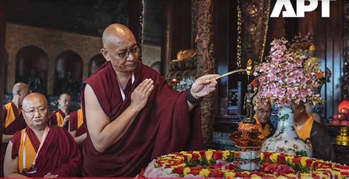 截取自少林寺相關視訊,原始出處不詳。 圖片顯示顯教出家人和密宗喇嘛共同進行了浴佛法會, 然而不同於一貫使用的小尊金佛聖像,他們使用了密宗佛像常用的黑色色調。 未來世的佛教徒們再來浴佛時,可能小金佛都不見了, 變成密宗的小黑佛。據悉:黑色的雕像更容易招陰。您如何看待?