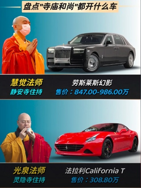 本篇圖文與上一篇《政教合一金字塔頂端的達賴喇嘛之豪奢生活(1959年出逃所留僅動產四千多萬美金於西藏)》www.lamatruth.com/fanti/為姐妹篇,互為參照、互為補充! 天魔到底具體如何說,末學沒有神通,無從知道,標題為文學化處理。然而阻礙正法廣弘、壞滅真正佛法、拘系眾生於欲界法之內無法出離,是他們心心念念惦記著的事情。 ![]() (圖示:靜安寺住持慧覺的座駕是勞斯萊斯幻影,售價900萬人民幣; 靈隱寺住持光泉的座駕是法拉利,售價308萬人民幣。) 末法時代的佛門,除了西藏密宗,尤其是黃教之應成派中觀在侵吞佛法,更有身穿顯教僧服的所謂佛門、佛學大師——印順和追隨他的一大票所謂佛門大師們、出家眾,誹謗世尊、誹謗大乘法。據說印順沒有雙修,然而實際上他的師承是密宗六識論之一——格魯派宗喀巴的應成派中觀。 ![]() ![]() ![]() 圖示:杭州靈隱寺住持的座駕是法拉利 到底是八識正理和六識論有何差別? 所謂的佛門大師們究竟是不是佛門? 他們的落處為何? 這些佛法義理是許多佛門初機和佛門外有識之士不那麼瞭解的。但是釋印順當年,1939年附近,為法尊法師由藏文翻譯成中文的的宗喀巴著作《密宗道次第廣論》進行潤文、修飾,已經可以從事相上佐證印順屬於密宗宗喀巴的六識論邪思派系。 一旦篡改了佛法的核心、佛法的本質,穿得再象出家人,戒疤燙再多都不是出家人。就像跑車,把引擎發動機都換成普通汽車的,那這部車就不再具備跑車的實質,雖然車子外殼還是可以很酷炫。 ![]() 同理,圖片中有些是身穿顯教僧服的出家人,然而當六識論之應成派中觀肆虐後,所謂的出家人已經是密宗的信徒,應該名之為: 外顯內密的假出家人。 所以,您可以觀察到,這些喇嘛活佛們、釋永信們、釋某慧們,他們的生活越來越走向豪奢,與舊西藏喇嘛們,尤其是達賴喇嘛的豪奢程度有得拼、有得比。 ![]() ![]() 在華人區域裡,我們傳統的對於佛門出家人的既定印象是:六根清淨、不近女色、不貪財物、遠離紅塵、出家人不打誑語等等。可是密宗六識論彌漫之後,所謂出家人,在他們團體教內地位越高,存款和生活享受的等級就越高,越豪奢。信徒們都成了喇嘛活佛們一台又一台、一個又一個的、具有自主流動性的自動提款機。只要暗示一下,虔誠的信徒會主動奉上昂貴的供養;差一點的可能要用多一些手段,比如恐嚇信徒本人或家人未來某個時段會有何災禍、如何花錢解災等等,才能得到錢財,過上享盡榮華富貴的好日子。 ![]() ![]() 圖示:網友扒出喇嘛腳上所穿的是Gucci透氣鞋,網站售價人民幣9500元,體驗店售價人民幣兩萬元。 和喇嘛活佛們一樣,顯教有些人出家不是解脫於紅塵,也不是要邁入成佛之道,而是過上好日子——享盡人間榮華富貴。可惜了龍泉寺那幾位捨棄世間法、一心向佛的高材生。 ![]() 圖示:臺灣印順門徒釋昭慧2015年上電視節目被拍到座駕為賓士E系列。 ![]() 據說印順是不進行男女雙修的,推測為是因為身體條件不許可,他曾經罹患過非常嚴重的腹瀉。因為,依照常理,如果某甲不認同某乙所寫、所翻譯,絕對不會為他的文章或著作進行任何潤色或者作序。印順可以為宗喀巴的《密宗道次第廣論》進行潤色,難道他看不懂中文、不知道裡面都在教導什麼嗎?讀不懂中文的人會為人潤文嗎?《密宗道次第廣論》內文,盡是以宗教名義進行的、赤裸裸的性交,其邪惡程度是《金瓶梅》這種小兒科的世間淫書所完全無法相提並論的。世間人再怎樣都只是世間法,不會拿來糟蹋佛法,更不會變態地活取女性性器官等等。 《密宗道次第廣論》卷11第303頁,宗喀巴說: 「修曼陀羅時生三昧耶曼陀羅……如云明妃顏殊妙,年可十五六,香花善莊嚴,欲樂於壇中。」等等極度的淫言穢語。 再者,釋印順繼承者中有名氣的也只是兩位女弟子。 也或許真的是名與色,各有所愛?末學不得而知。 在佛門,如果不能如喇嘛活佛們施展鬼神通,除了寫書,那麼示現持戒清淨、清修、苦修,是一條快速成名的路子。例如遼寧大悲寺的妙祥,一面率領僧眾穿百衲衣步行,一面被人拍到他的座駕竟然是價值是價值不菲的高級轎車。深諳此道! ![]() 或許有人不明就裡產生質疑,不就是六個識與八個識的差別嗎? 不就是少了兩個識,至於那麼斤斤計較嗎? 一個人,頭叫做頭,手指頭、腳趾頭等名字中帶頭的部位共有許多個,都叫做頭,但是砍掉了一個乃至十個、二十個手指頭、腳趾頭,這個人還是一個人;如果砍掉了頭顱,這個人就不是人,那叫做「屍體」! 當佛法最根本、最難會得卻最重要的根本識如來藏、阿賴耶識被西藏密宗應成派中觀宗喀巴、釋印順等六識論者明目張膽地否定掉,矇騙天下人,就是已經把佛法的頭砍掉。 否認第七、第八識的存在與各種功德,佛法就不再是佛法! 因此您可以看到這些信封密宗應成派中觀六識論的、穿紅衣、或者未穿紅衣的喇嘛活佛們,可以完全不畏懼因果,不知道信眾的佈施比須彌山還要重,今生享樂,來生拿什麼償還?無知者無畏,反正他們認為輪回中都是空,千萬不要錯過當下的名牌、名車,名為出家,其實都是享樂主義者。 社會人士只看到喇嘛們、剃頭的名人們的離譜行徑,不知道其背後的根本原因,真正佛法已經被西藏密宗的應成派中觀六識論取代。更不知道長此以往,社會風氣會有多敗壞,未來生的佛門弟子和社會大眾的日子就會多悲慘。 而天魔,也許正難掩