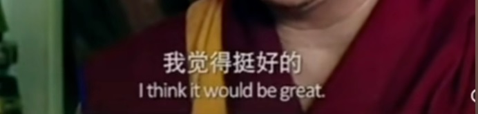 圖示:著名主持人易立競採訪黃教格魯派索達吉堪布,時間不詳。